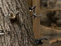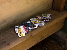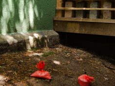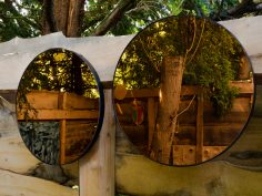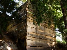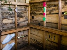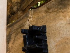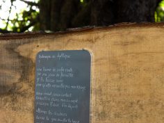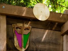 Notre espace d’art, le 24/7, était accessible à travers la porte côté route de Lausanne. L’installation découpe une zone d’environ 4 x 4 x 4 mètres et la délimite par des parois en bois taillé. Ella été construite lors du workshop en mai 2021.