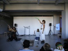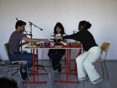 Durant ce workshop avec une bruiteuse de cinéma professionnelle, nous avons réfléchi et expérimenté différentes manières de sonoriser une œuvre.