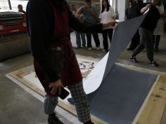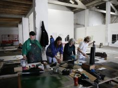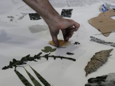 Faire le tour du quartier et récolter de la matière, au sens large du terme, et de pouvoir donner un point de vue au travers d’un système d’impression XXL à l’aide d’un engin de chantier détourné en presse : le rouleau compresseur. Le Workshop se produit aux Ateliers Jeanne Barret, projet culturel situé dans un ancien bâtiment industriel qui sert désormais de lieu de production artistique mais aussi de lieu de rencontre associatif et social. S’imprégner d’un environnement que l’on connait, sans jamais réellement s’y être rendu est donc notre point de départ. Les étudiant.e.s de l’HEAD et cell.eux des Beaux-Arts de Marseille, ne connaissent pas nécessairement ce quartier en lisière du centre, mal desservi par les transports en commun, et délaissé par la municipalité. Quartier dans lequel se déroule une vie quasi-hermétique du reste de la ville, une bulle transpercée par un développement rapide qui se produit par-dessus un passé populaire et industriel méconnu. Nous nous sommes aventurés dans le quartier entre les ruelles, les puces sauvages jusqu’aux grandes halles en passant par le Lidl. Autant de zones d’échange et de commerce qui sont les points de rencontres d’une population locale. Certain.e.s ont pris la décision de récolter des éléments aux abords de la route, délaissés par les chantiers ou les biffins comme des vêtements ou des objets usés. Mais pour d’autres, une question s’est très vite posée : sommes-nous légitimes de cette récolte ou même du quartier ? Le geste de passer au rouleau compresseur n’est-il pas inapproprié en vue des démolitions et reconstructions qui se passent de l’autre côté de la rue ? Les objets qui subsistent dans ces rues sont le résultat d’une boucle où, après avoir été jetés une première fois, se retrouve être récupérés puis revalorisés par les biffins avant d’être laissés sur place s’ils n’ont pas trouvé preneur. Notre démarche s’inscrit à cette étape, lorsque l’objet se retrouve sans « utilités », lorsqu’il fait partie du décor dans lequel il a été laissé, avant d’être régulièrement récupéré puis détruit. Autant de questions, qui ont été explorées, discutées et mises en images dans des réappropriations avec parfois l’intervention d’autres systèmes d’impression, plus manuels, ou l’utilisation d’objets achetés ou donnés par les vendeurs des halles.