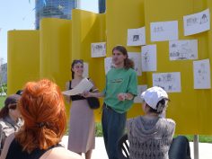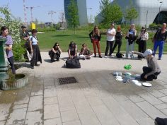 Un premier groupe s’est formé avec l’intervenante et curatrice Katia Anguelova, celleux-ci sont resté à Milan centre dans le quartier d’affaires City Life Area. L’endroit comporte un important parc à sculptures contemporaines et les étudiant.e.x.s ont été invité.x.s à penser et imaginer des interventions communicant avec ces dernières.