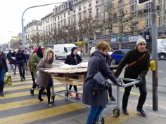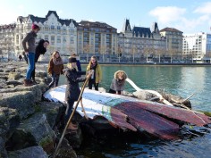 En février 2013, une centaine de mouettes posées sur les rives de la jonction du Rhône et de l’Arve ont vu un groupe d’étudiants mettre à l’eau un radeau. Il était composé de fragments d’épave récoltés cinq jours plus tôt dans le Léman, et couvert d’objets en plâtre évoquant l’aventure de Donald. C’étaient des moulages de flotteurs, de goupilles et de poulies, de cordages, tous fabriqués exprès en son souvenir. On ajouta quelques bougies au monument et, après une brève cérémonie, on laissa dériver le radeau. C’était un fantôme blanc, flottant tout juste à la surface du fleuve, dans la brume de l’hiver genevois. Lentement, il se dirigea droit vers le pilier central du Pont Butin. Il s’y heurta doucement, et coula. Aux cris de ravissement des étudiants et de leurs professeurs, toutes les mouettes s’envolèrent comme un feu d’artifice. Face à la perfection de cet accident, on pensa à Donald.