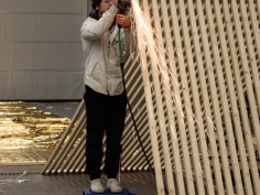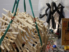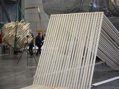 Si les étudiants ont eu un premier temps de préparation à l’école, l’objectif n’était pas de fabriquer à plus grande échelle des maquettes déjà réalisées, mais vraiment de « penser en grand », c’est-à-dire à l’échelle des halles des Grands Ateliers, des matériaux présents avec leurs caractéristiques, de construire avec l’implication de son propre corps.