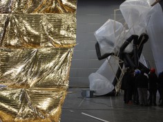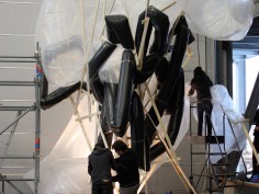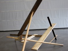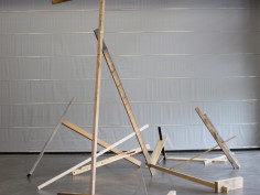 Certains projets ont complèment changé, perdant leur composant figuratif pour devenir des constructions abstraites, d’autres se sont complexifiés, à l’instar du projet des gonflables, qui s’est développé dans la verticalité, en s’appuyant de plus en plus sur une structure de tasseaux. L’ensemble devenant une oeuvre mettant en tension des notions d’expansion, contrainte, équilibre, grandes dimensions.