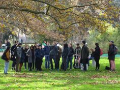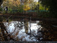 La seconde étape, consécutive à une visite préparatoire des lieux a consisté à se rendre dans le parc des Cropettes afin d’y installer les objets réalisés, qui dans des arbres, dans les jeux d’enfants, dans un étang ou encore des toilettes publiques, voire dans les racines d’un arbre ou encore dans une bouche d’évacuation des eaux.