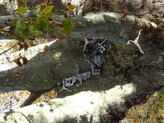 Ce workshop à double détente a mis sur pied en une semaine la découverte d’un technique, la fonte d’aluminium comme moyen sculptural et un mode de présentation, sous la forme d’un placement sauvage des objets réalisés dans un parc genevois.