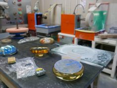 Connu depuis l’antiquité, le verre a une histoire longue comme celle du bronze, mais avec un bond soudain lors de la révolution industrielle pour devenir aujourd’hui un des matériaux les plus utilisés au monde. Parallèlement, une production artisanale a perduré et de nombreux artistes se sont penchés sur ce matériau. En octobre 2018, nous avons commencé à explorer ce matériau, son histoire, ses possibilités, d’abord en Suisse dans différentes collections de verre historique et contemporain, puis à Marseille au CIRVA, à la pointe de la recherche. En février 2019, nous développerons des projets qui seront réalisés à Marseille.