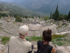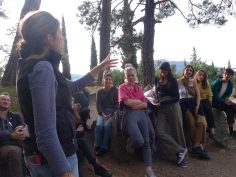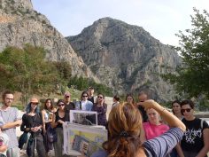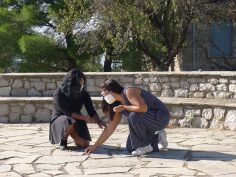Potlatch acte II : au « nombril du monde » ; point ou le théâtre et le culte révèlent leur origine commune « aux » Delphes, l’archaïque et la contemporaine. La collaboration retour/Contre-‐don avec les étudiant-‐ e-‐s d’Athènes et ceux-‐celles de la HEAD, dans un temps compté : visite de la Biennale d’Athènes « ANTI », voyage à Delphes, trois jours de travail en commun, une journée de présentations. Les travaux réalisés en amont et adaptés une fois sur place ont été présentés sur le site archéologique de Delphes, après trois jours de réalisation et collaborations en duos genevois-e-s/athénien-ne-s ; qu’il s’agisse de performances, de lectures, ou d’objets.