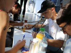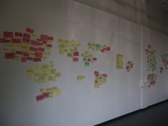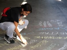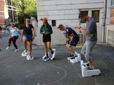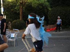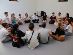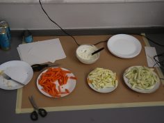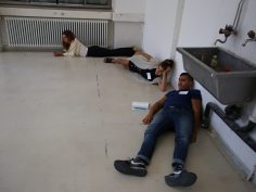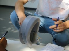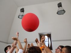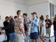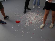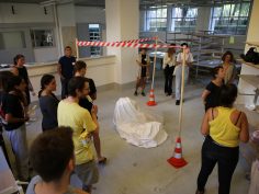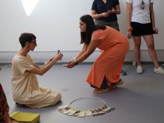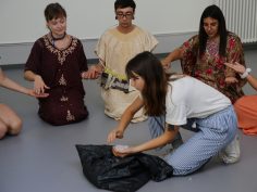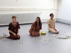 In the beginning of the workshop “Objects on the move-Performative Reflections on Ceremonies and Rituals of Giving and Taking”, we investigated the ways of giving and taking on the sculptural object level. The potlatch ceremonies, for example, follow a strictly regulated sequence of ceremonies and rituals performed on a kind of stage, with masks, singings, dances and spiritual spells. After our research we invented and developed our own ceremonies and rituals of giving and taking. We then created a space of encounter and exchange, various objects on the basis of which we performed the rituals and we have on the one hand choreographed the physical and oral elements of the performance/ceremonie and on the other hand developed movements and actions which activate the objects. Our focus was the performative quality and the paraphernalia of the process and not the handed over present / gift itself. Questions like : What are we handing over ? Why and how do we hand over a present ? How do we feel and behave, if a present is given to us ? How does giving and taking influence relationships between people and objects will be investigated and discussed.