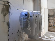 Après un voyage à Berlin et 10 jours de travail en groupe, 9 étudiants de l’option construction et 9 étudiants de la filière mode ont présenté ces sculptures-‐installations-‐présentoirs à partir de matériaux et d’espaces les plus variés possibles, afin de rendre ces deux mondes totalement indissociables. Le temps d’une soirée, ils ont ouvert leurs « pop up store » dans les méandres et les pièces du Bâtiment D de la HEAD.